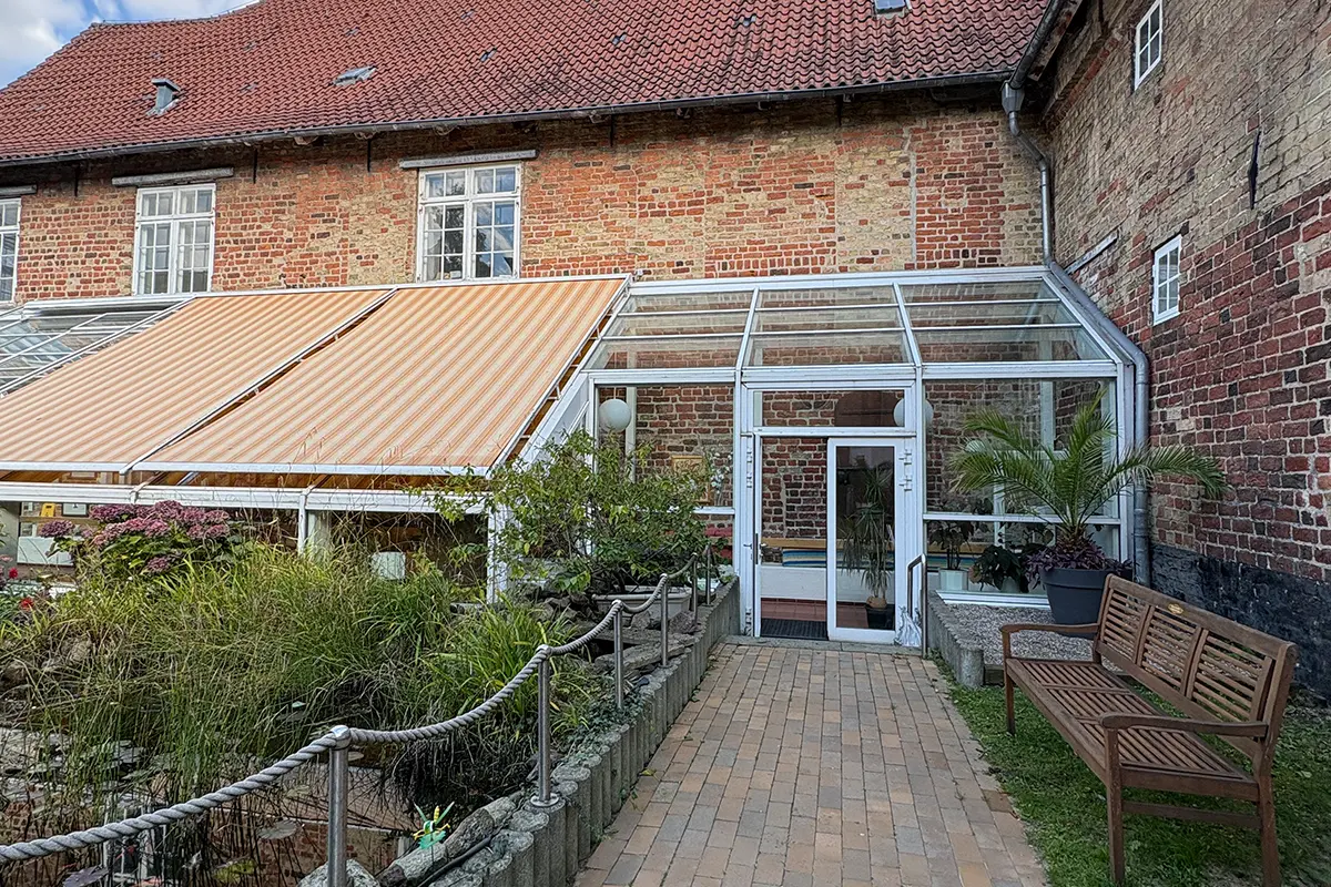 Unser Wintergarten ist ein lichtdurchfluteter Raum, der zu jeder Jahreszeit einlädt, die Natur zu erleben. Egal, ob Sie hier ein Buch lesen, eine Tasse Kaffee genießen oder sich mit Freunden austauschen möchten.